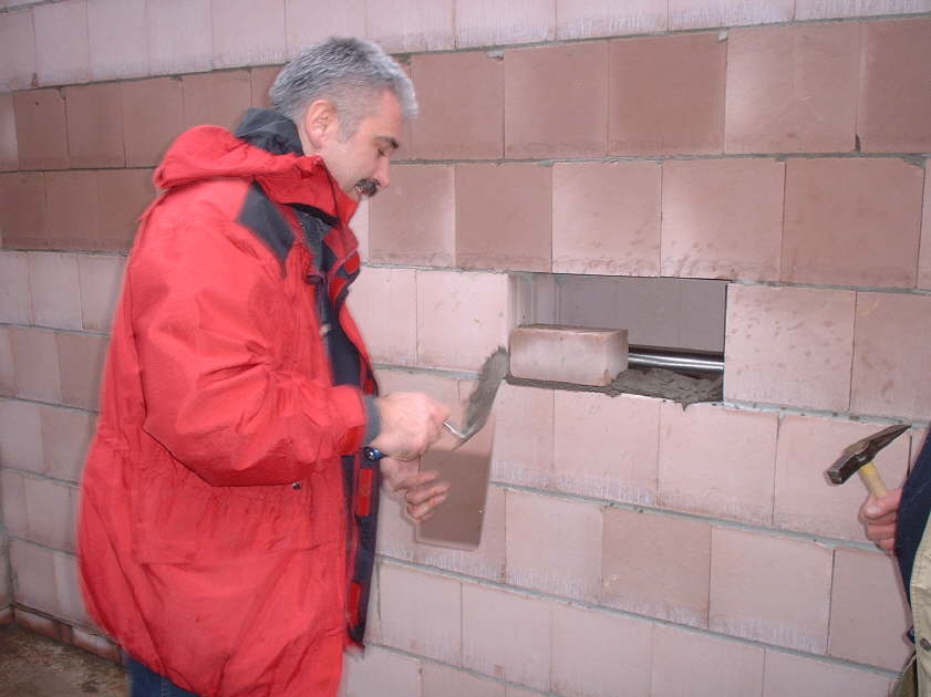 Der Anfang ist gemacht, die Rolle wird eingemauert